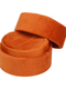 Made from high quality velvet with a ribbon trim and pillowy holder in a spiced orange coppery colour.
