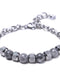 A subtle yet striking beaded bracelet featuring 4 natural tigers eye stones in mid grey between 5 silver toned textured spacer beads on a chain link with clasp buckle.